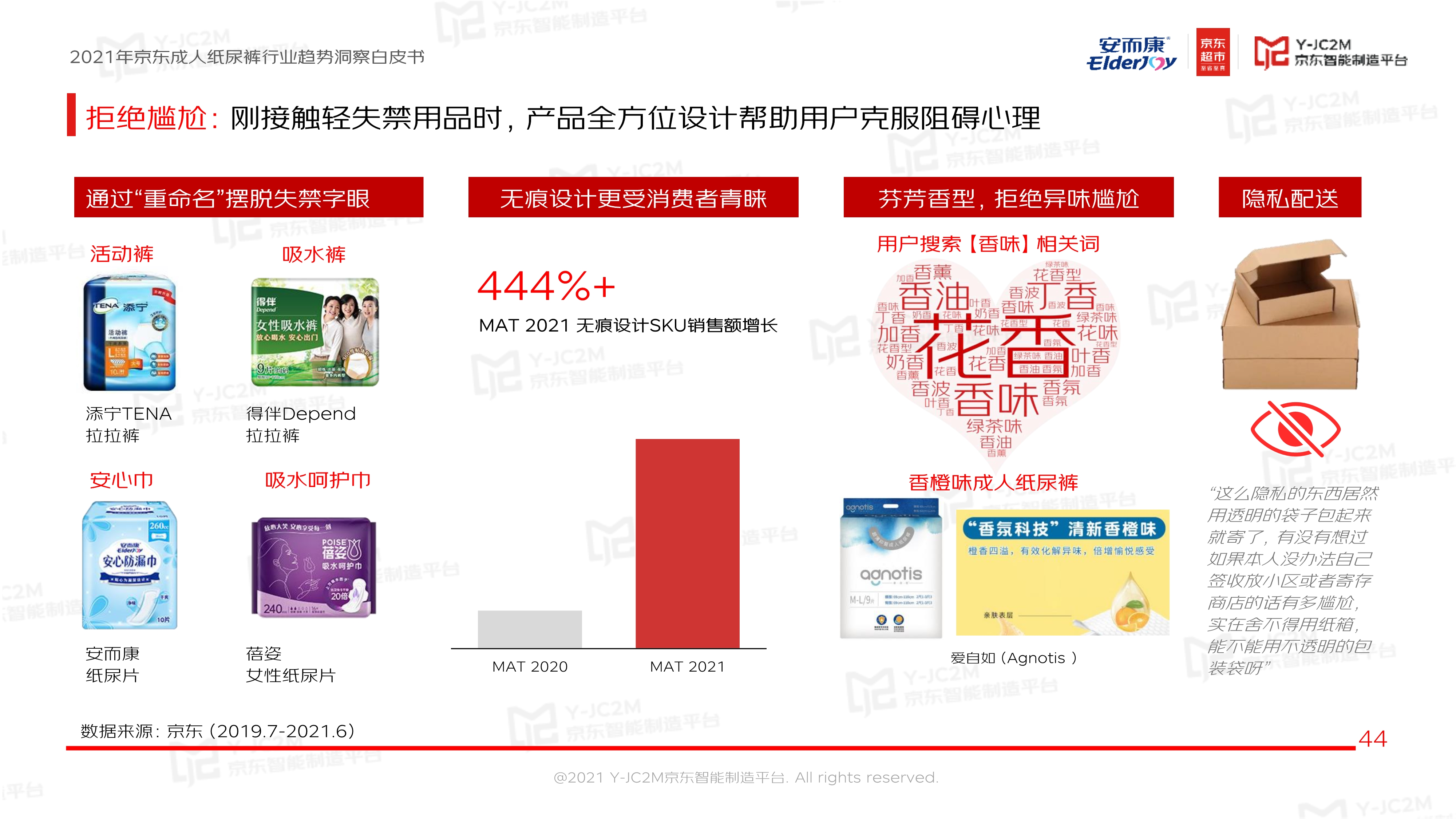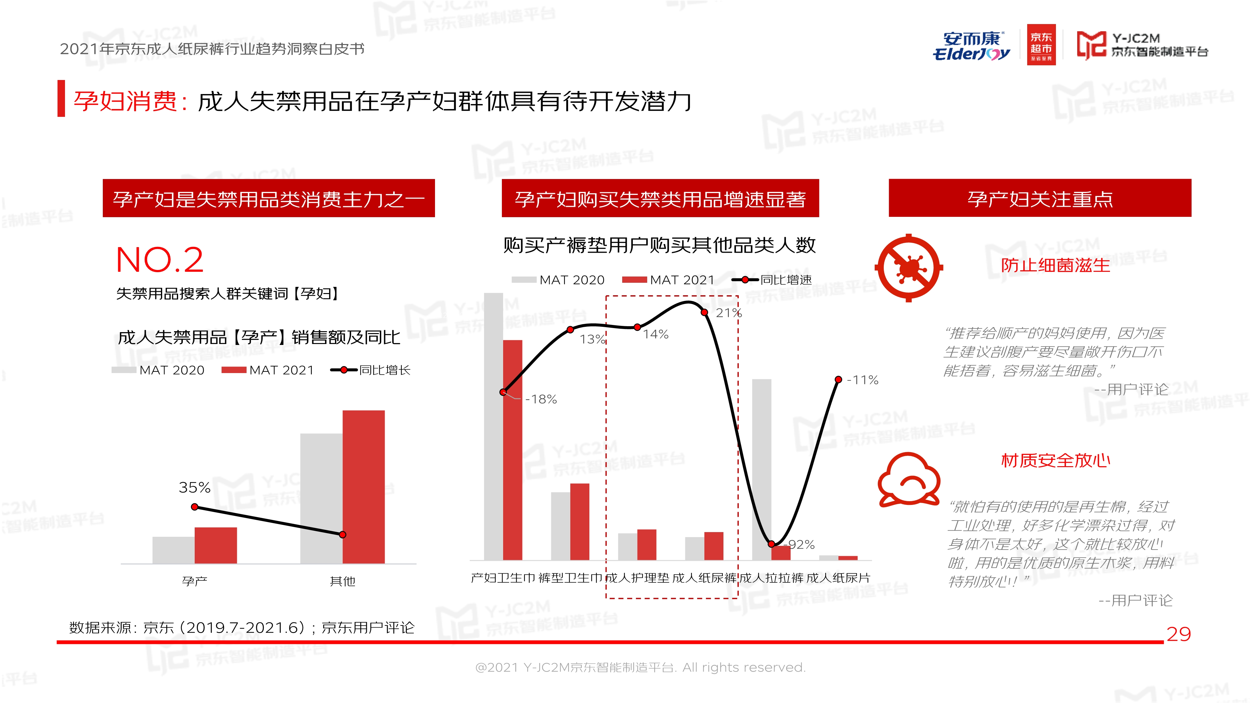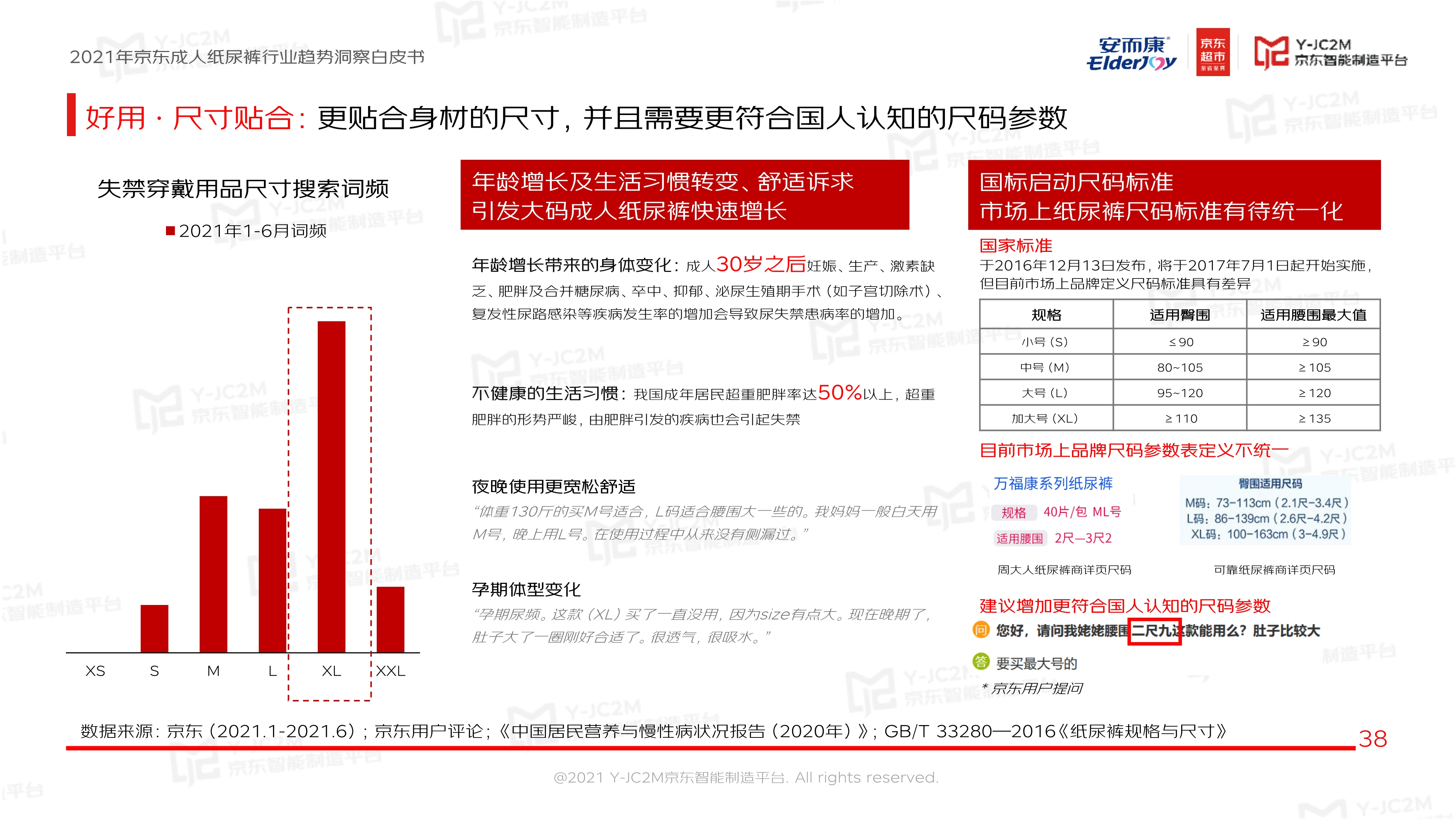 时间段: 2023-01-07近日,天天购彩welcome旗下成人纸尿裤品牌安而康联合京东智能制造平台共同发布《2021年京东成人纸尿裤行业趋势洞察白皮书》(下称《白皮书》),从行业概况、品牌格局、用户洞察、趋势展望四个维度,结合销量数据与消费者,深入剖析了随着我国步入老龄化社会以及消费观念不断升级,国内纸尿裤市场的全新变化与发展趋势。